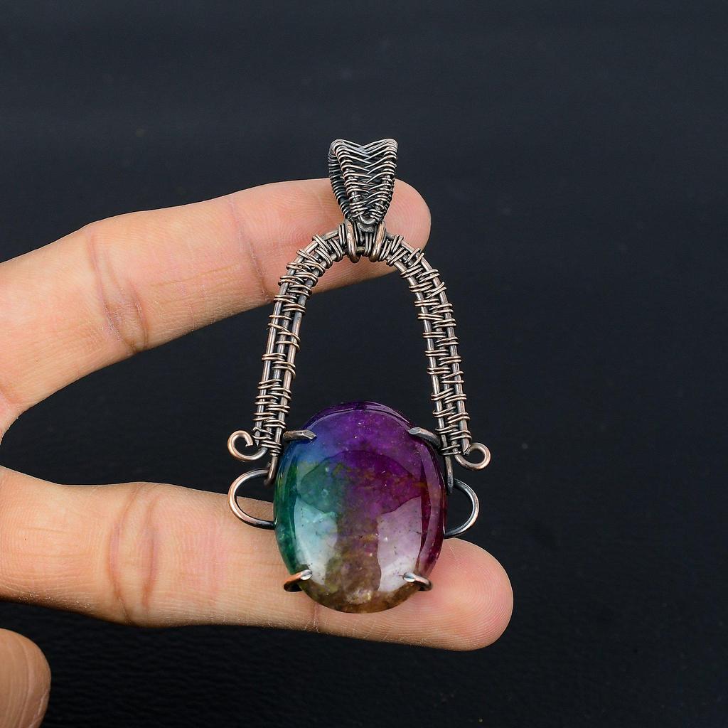 Rainbow Solar Quartz 999 Copper Wire Wrapped Pendant, Handmade Gemstone Pendant Jewelry, Gifts For Wife Brand New Pendant