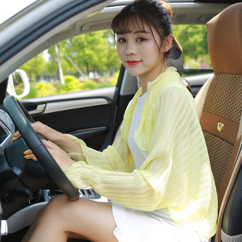 Pleated Ruffle Chiffon Sunscreen Shawl with Sleeves for Women - Summer Cycling & Driving Scarf