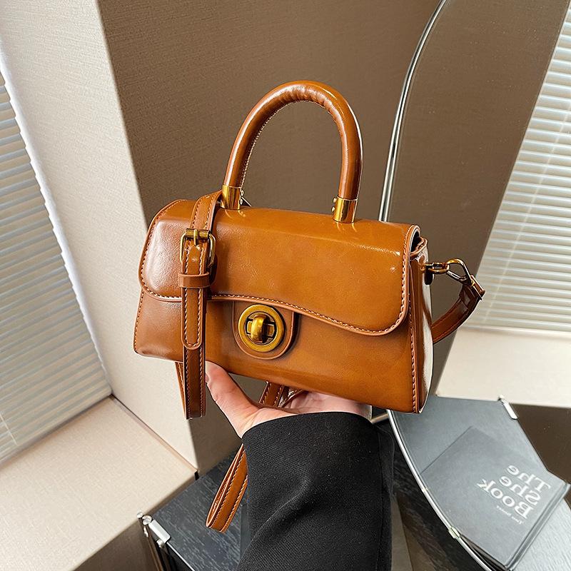 - **Structured Multi-Way Bag Details**: Features a stylish structured flap silhouette with PU material, glossy finish, circular metal lock detail, and versatile carrying options (handheld, single-shoulder, crossbody), exuding retro and chic charm. Multiple color options cater to diverse style preferences.