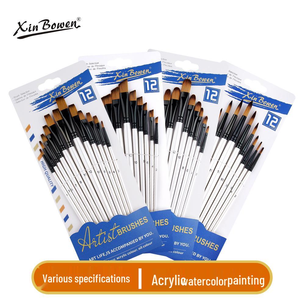 Children's 12-Piece Nylon Hair Paintbrush Set for Watercolor and Oil Painting