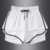 These men's summer sports shorts feature a trendy cross-border design that gives the illusion of a stylish two-piece ensemble. Made from a comfortable polyester material and a chemical fiber blend, they are perfect for active days and leisurely outings. The shorts are lightweight and breathable, ensuring you stay cool even in warm weather. With convenient back pockets, they provide practical storage for your essentials while maintaining a sleek, fashionable appearance. Ideal for those who appreciate both style and functionality in their summer wardrobe.