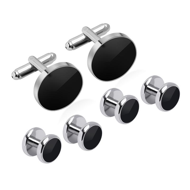 8-Piece Black Baked Paint Cufflinks & Tuxedo Studs Set for French Shirts