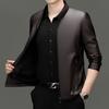 Experience the perfect blend of style and comfort with this men's high-end sheepskin leather jacket. Designed for a modern gentleman, this jacket features a sophisticated stand-up collar and is crafted from genuine leather, ensuring durability and an elegant appearance. The fleece lining provides extra warmth, making it an ideal choice for middle-aged individuals looking for both fashion and practicality in business casual settings.