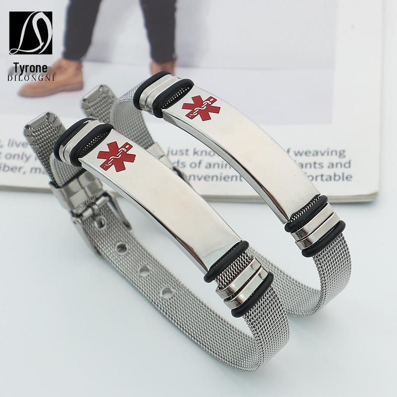 Unisex Titanium Steel Medical Symbol Bracelet - Engravable Fashion Jewelry