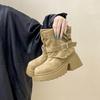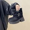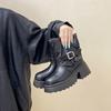 Retro Thick Heel Martin Boots Versatile Platform Short Boots Women's Autumn and Winter Design Sense Fashion British Style Belt Buckle Fashion Boots