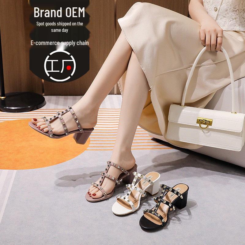 Women's Chunky Heel Peep Toe Mid-Heel Shoes – 2024 Spring/Summer