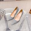 Crystal Shoes Sequined High Heels Women's 2025 New Temperament Pointed Stiletto Celebrity Silver Rhinestone Bridal Wedding Shoes
