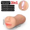 Dual-Head Triple-Entry Male Masturbation Cup with Simulated Mouth, Vagina, and Anus.