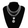 Vintage Multi-Layer Coin Necklace for Women - European & American Style Queen Image Jewelry