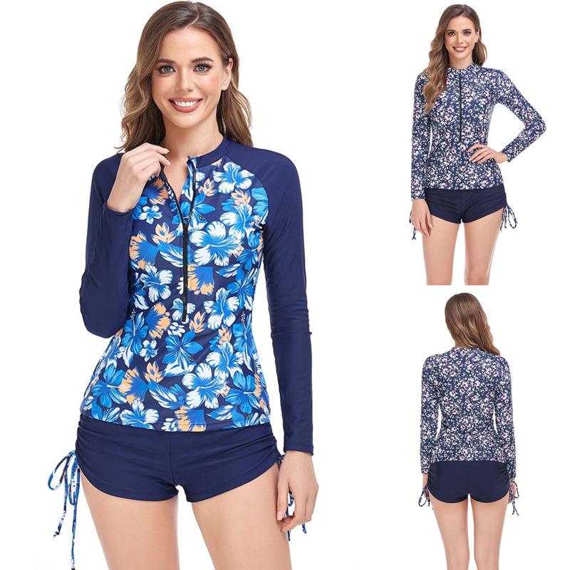 Dive into style and comfort with this exquisite swimsuit designed for women. Featuring a beautiful floral pattern, this ensemble combines elegance and functionality. Made from high-quality polyester, the long sleeve zipper swimsuit offers a chic look while providing optimal coverage and protection. Complemented by the drawstring flat leg shorts, this outfit ensures a perfect fit for any aquatic adventure. Ideal for beach outings or poolside lounging, this swimsuit set promises lasting comfort and timeless fashion.