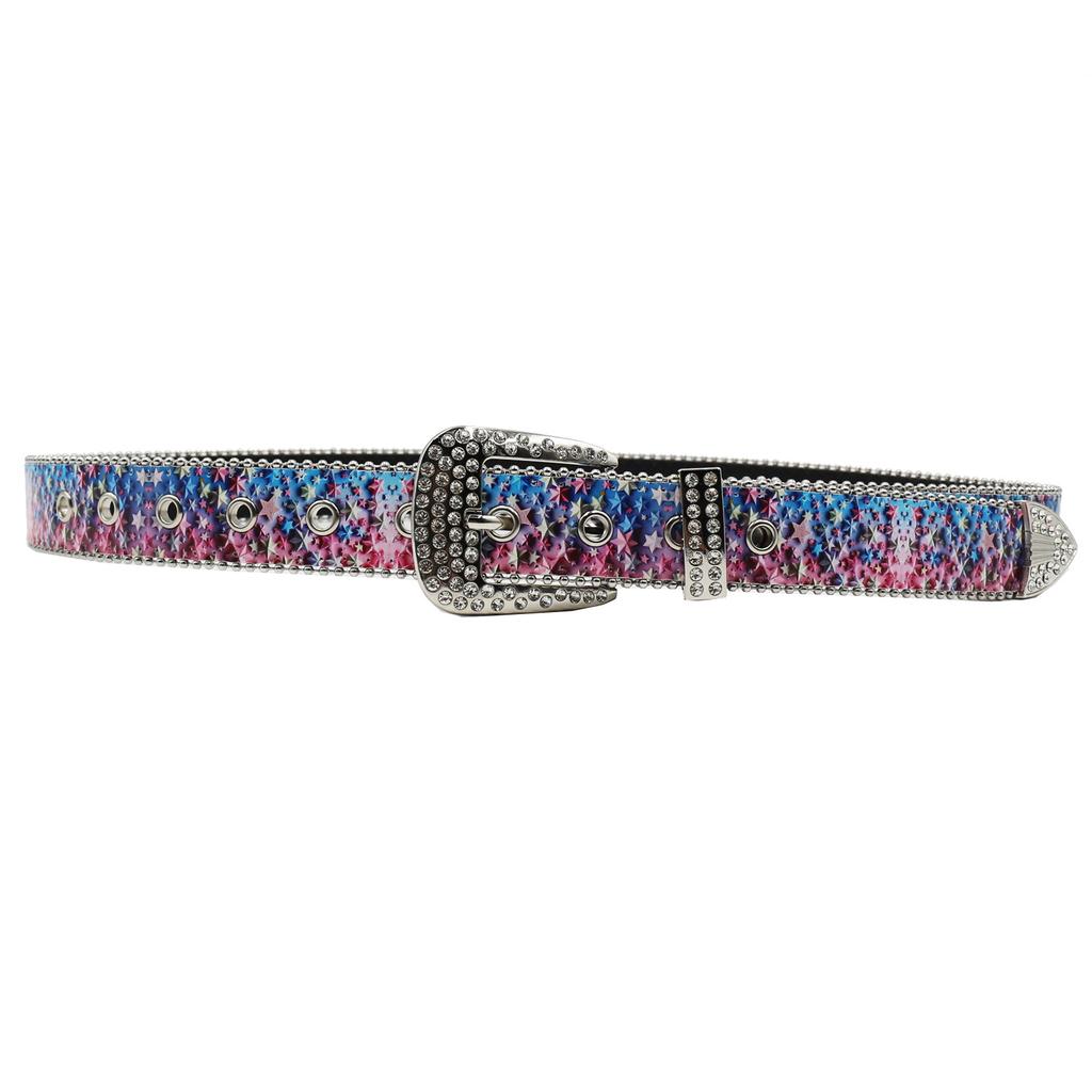 Rhinestone Belt Printed Belt Fashionable Versatile Punk Hip-hop Style Colorful Stars Versatile Trousers Belt
