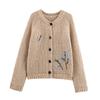 Women's Embroidered Round Neck Vintage Loose Knitted Cardigan Sweater Jacket