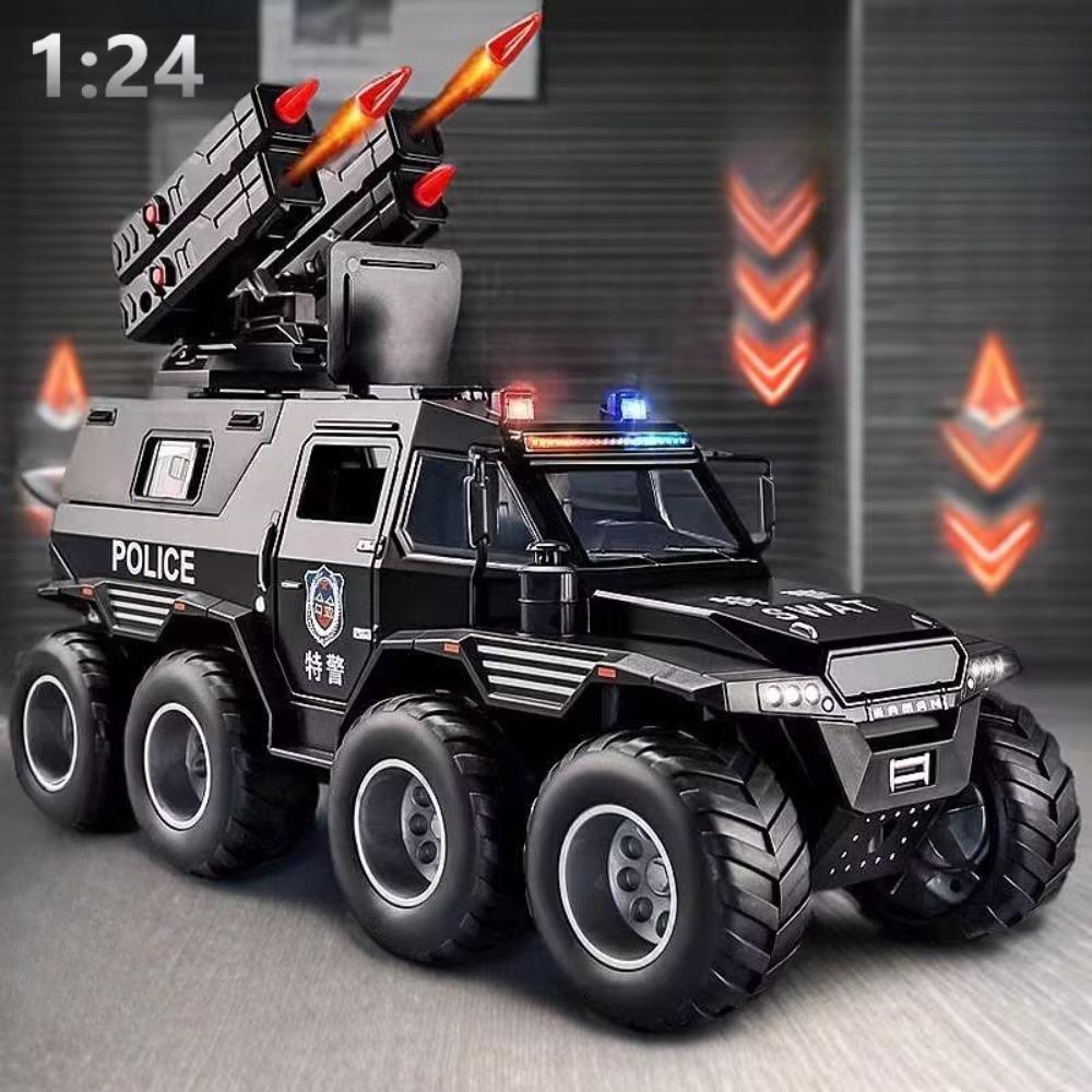 1:24 Shaman Armored Police Car Alloy Diecast Model Toy Car Doors Opened Sound Light Pull Back Miniature Vehice Boy Birthday Gift