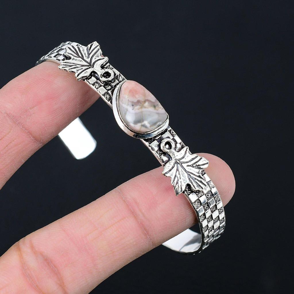 Daughters Day Sale Rhodochrosite Stone 925 Silver New Leaf Wife Bangle Bracelet