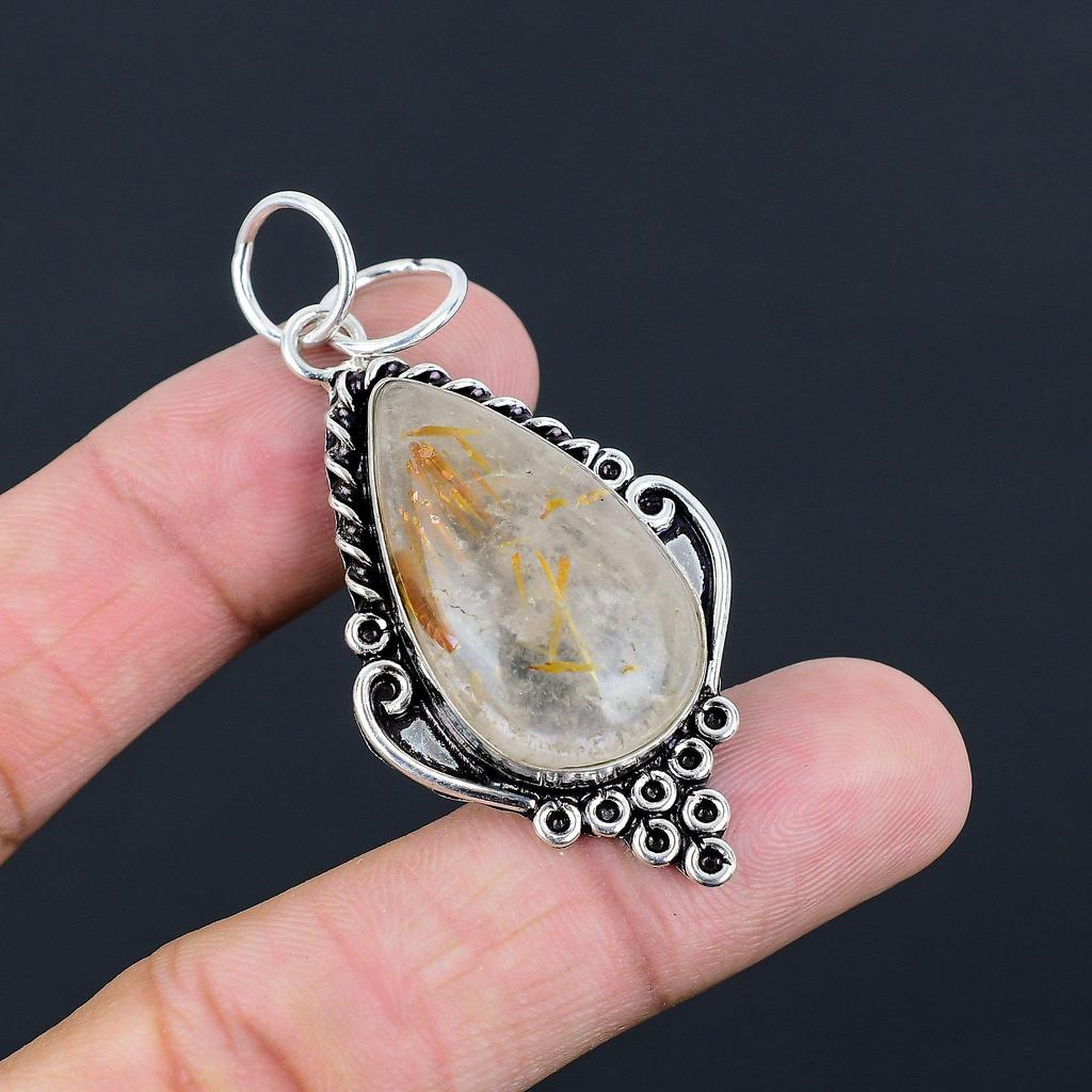 Pear Golden Rutile Stone Bezel Birthday Unique Pendant Jewelry Sterling Silver