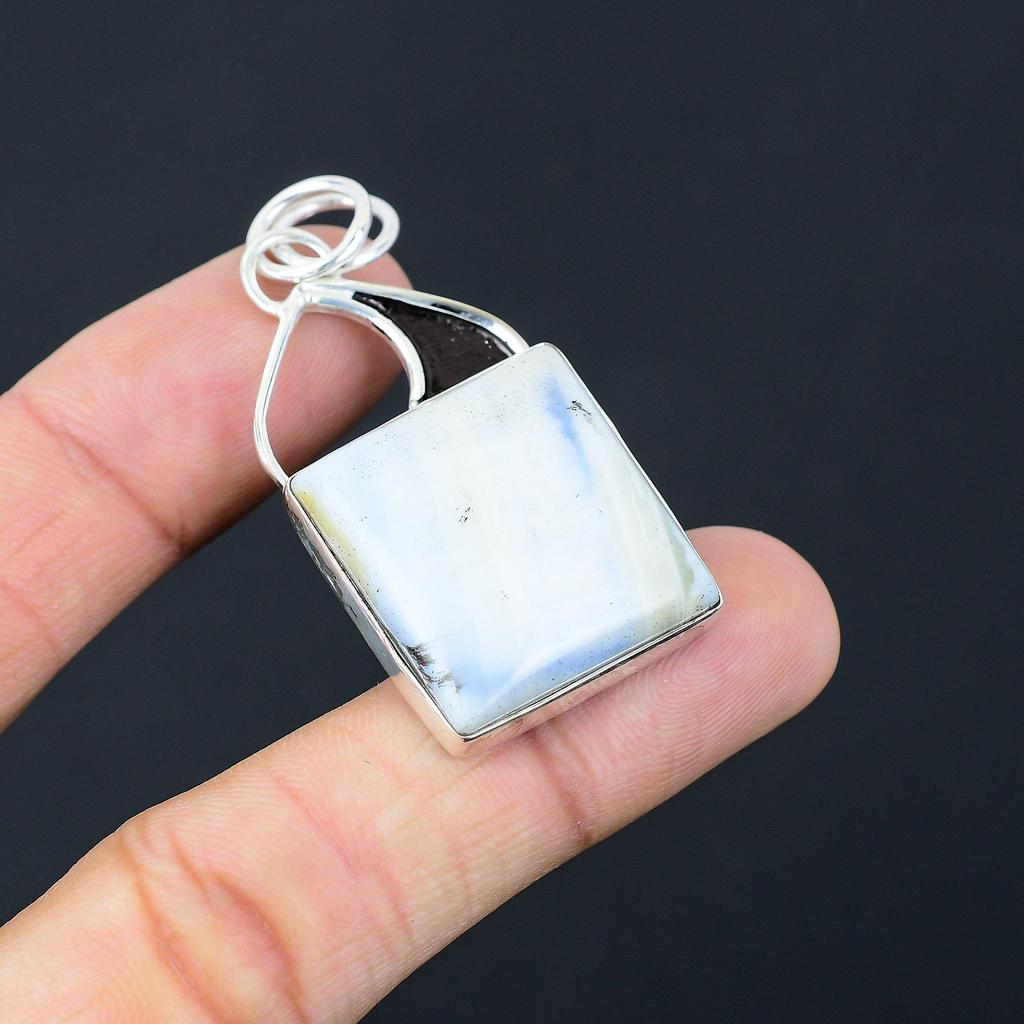 925 Sterling Silver Square Owyhee Blue Opal Stone Wedding Handcrafted Pendant