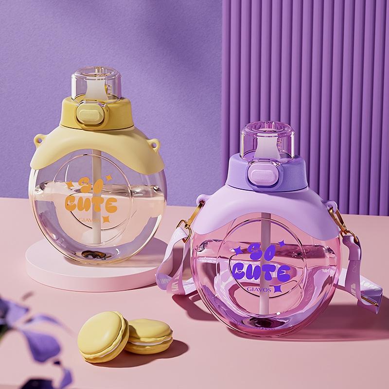 GIAVOS Minimalist Creative Sports Water Bottle with Straw - Portable & Cute Design