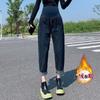 8 Pregnant Women's Thickened Elastic Lamb Wool Jeans, Winter Dad Pants, Warm Outer Wear, Casual Belly Support Pants