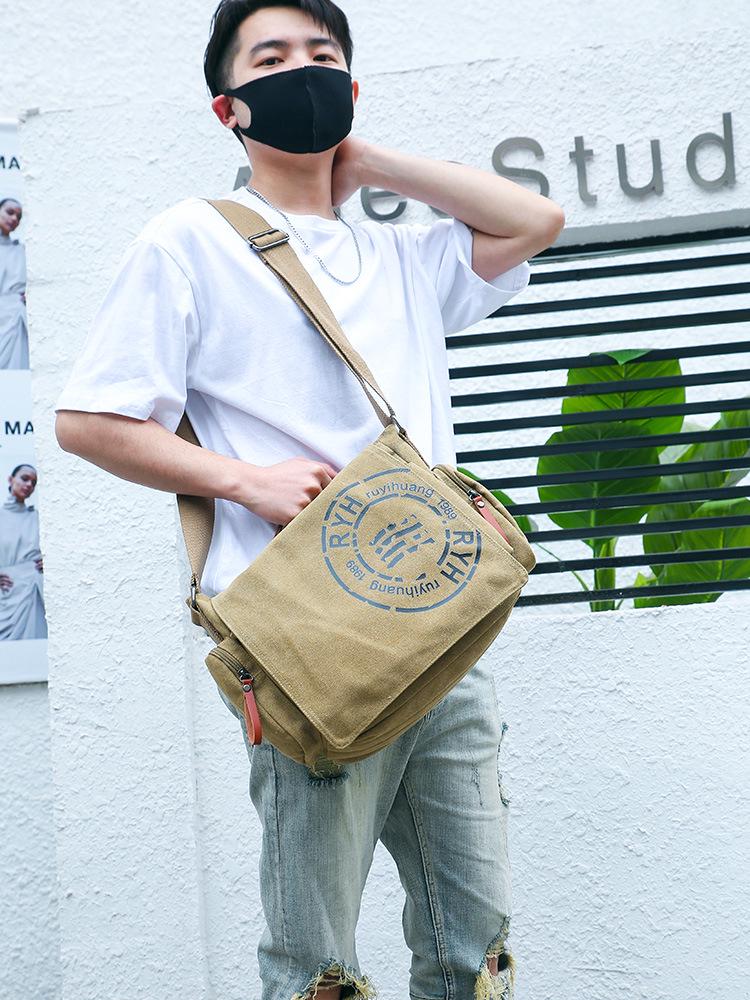 Men's Multi-Compartment Canvas Shoulder Bag - Fashionable Handbag, Crossbody, Briefcase, and Laptop Tote for Business and Casual Use.