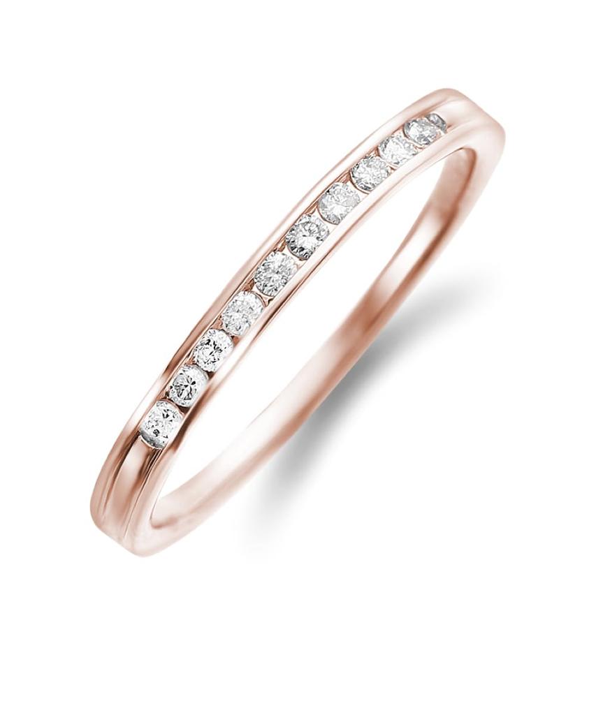 LEGAN Half Eternity Ring with Rail Size 8 In 18K Pink Gold Natural Diamond Engagement Proposal Ring for Made In Japan Setting, [10 0.1ct Diamonds]