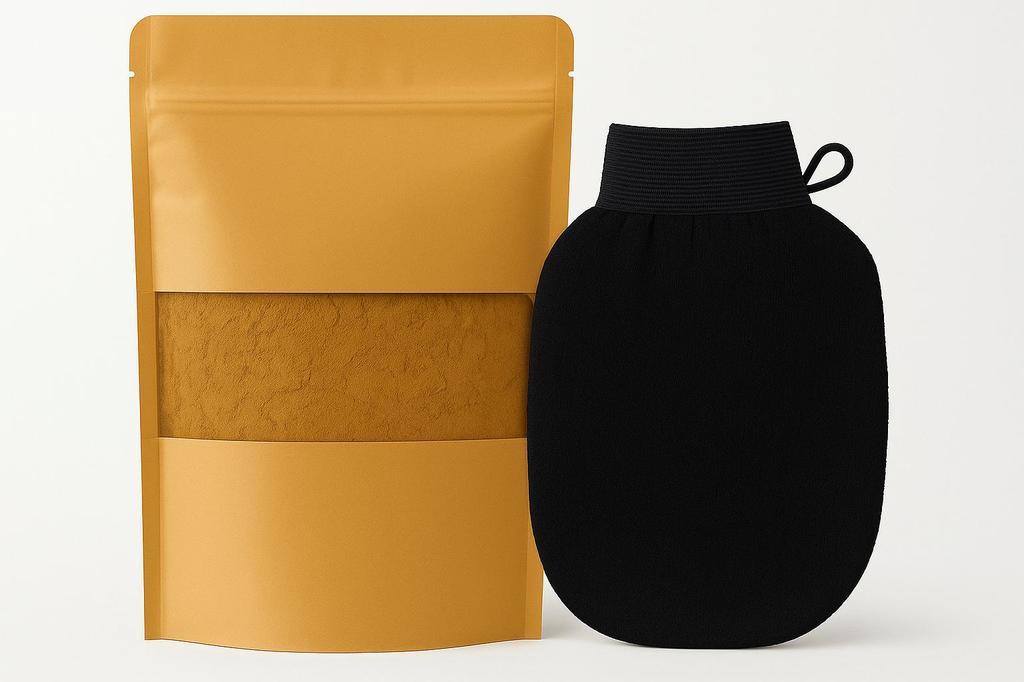 Rediscover traditional Moroccan skincare with this 100% natural exfoliating duo: Tabrima powder and a Kessa glove – straight from ancestral beauty rituals.