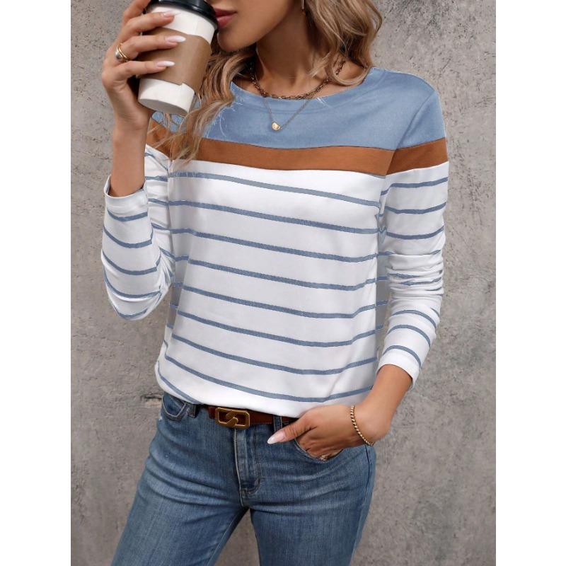 Women's T-shirts 3D Stripe Color Block Print Fashion Long Sleeve Round Neck Regular Top Holiday Weekend Spring and Autumn