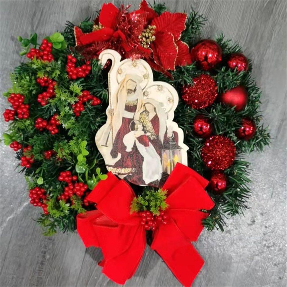 New Year with Lights Christmas Tree Wreath Front Door Sacred Christmas Wreath Jesus Door Hanging Ornaments Wall Decorations
