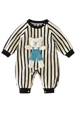 Long Sleeve Striped Animal Romper with Stuffed Soft Korean Baby 90cm [EnDast] Animal, Material, Children's Clothing, Clothing, Gift, 66cm, 73cm, 80cm,