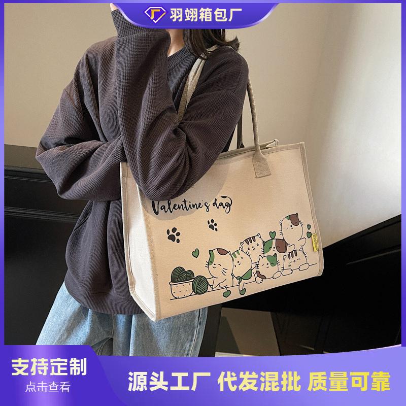 Cute Cartoon Large-capacity Canvas Bag Women's New Casual Shoulder Bag Class Commuter Tote Bag