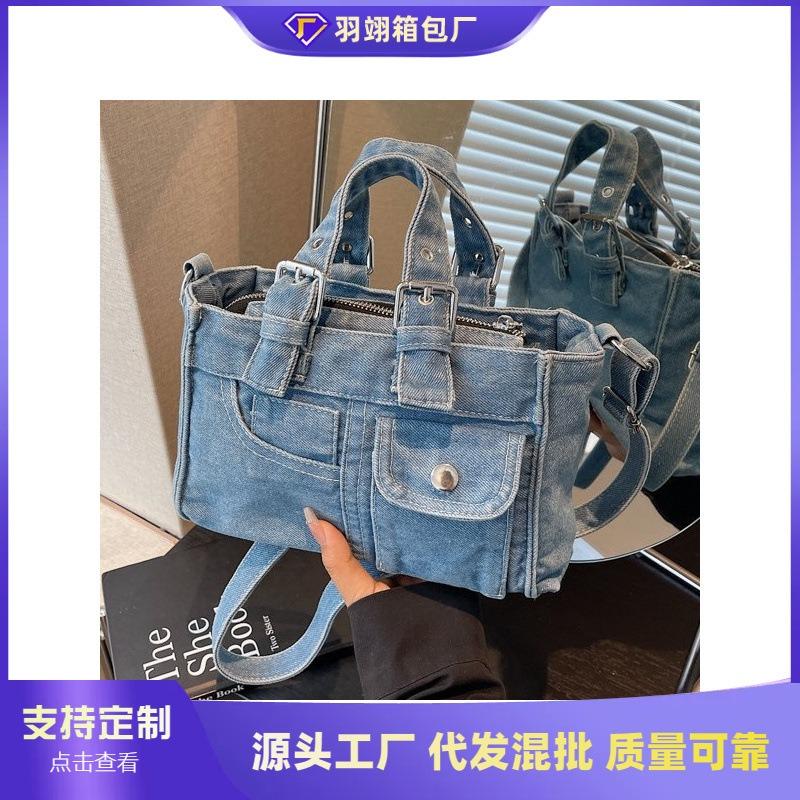 Niche Retro Versatile Washed Denim Handbag Bag New Shoulder Messenger Bag Fashion Casual Bag