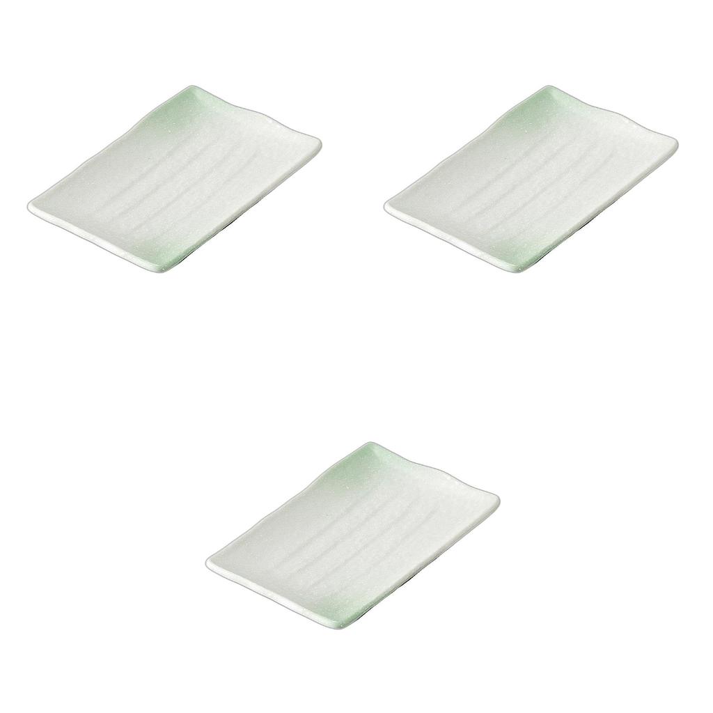 Set of 3 Green Blown Rectangular Plates X X Ceramic Pottery Plates by Setomonohonpo (Small) [18.6 12.3 2.2 Cm]