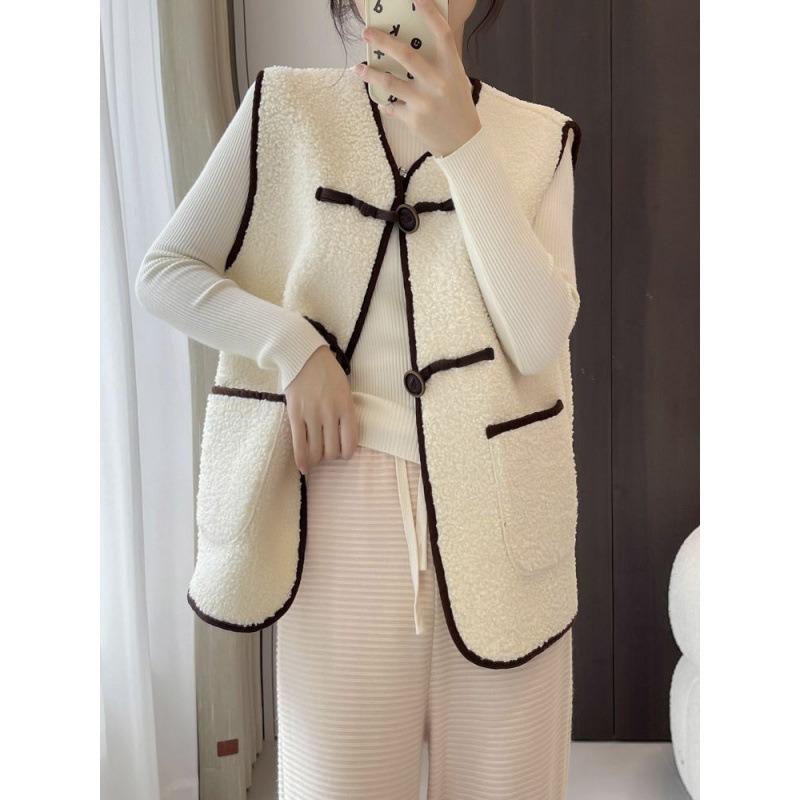 Lamb Wool Cardigan, Vest, Jacket for Women's Autumn and Winter New Models, Stacked with a Small Vest, Lamb Wool Vest.