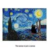 Water Lily & Starry Night Abstract Cat Art: Colorful Wall Hanging for Bedroom & Living Room