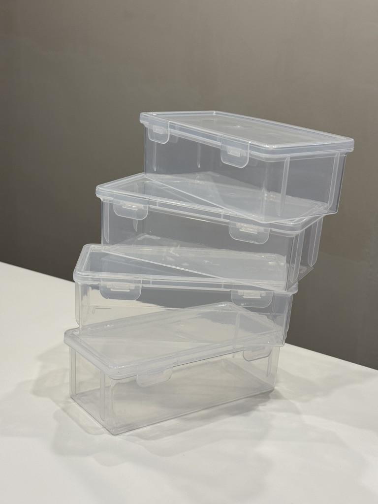 4pcs Plastic Clear Storage Box, Desktop Pen Pencil Marker Box, Flip Organizer with Hinged Lid, Back To School Supplies, Office Storage Box