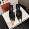 619-2 Temperament Striped Pointed High Heels Women's Versatile Fashion Mesh Stitching Hollow Commuter Bag Head Sandals Women