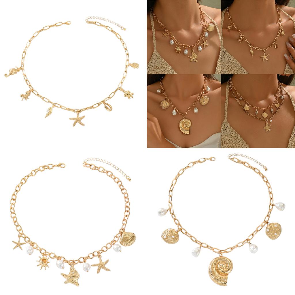 Embrace bohemian elegance with this zinc alloy necklace featuring delicate pearls and seashell accents, perfect for adding a touch of exotic charm to any outfit.