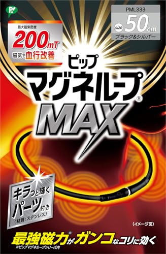 [Improves Blood Circulation] The magnetic necklace "Pip Magneloop MAX" contains six 200-mT magnets in a magnetic loop containing 55-mT magnetic powder. The two types of magnetic force penetrate widely and deeply to relieve neck and shoulder stiffness.