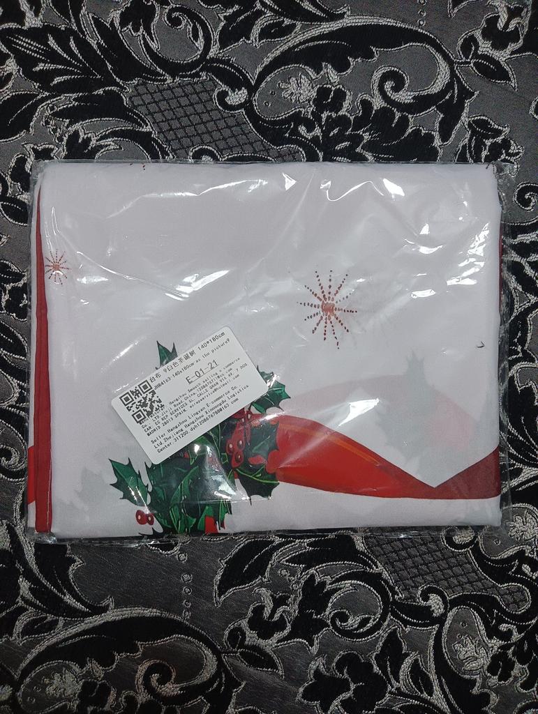 Festive Red Tablecloth with Decorative Elements - Easy To Clean, Machine Washable, Perfect for Party and Holiday Decoration