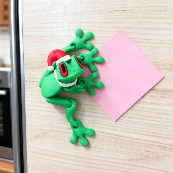 Yousheng Christmas Hat Frog Refrigerator Magnet 3D Printed Movable Joints Frog Fidget Toy Articulated Animal Model Figurine Fridge Magnetic Frog