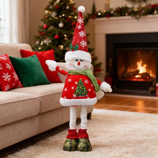Yousheng Christmas Doll Decoration Retractable Long Legs Plush Santa/Snowman/Reindeer Doll Toy Tabletop Standing Doll Ornament for Windowsill Shelf