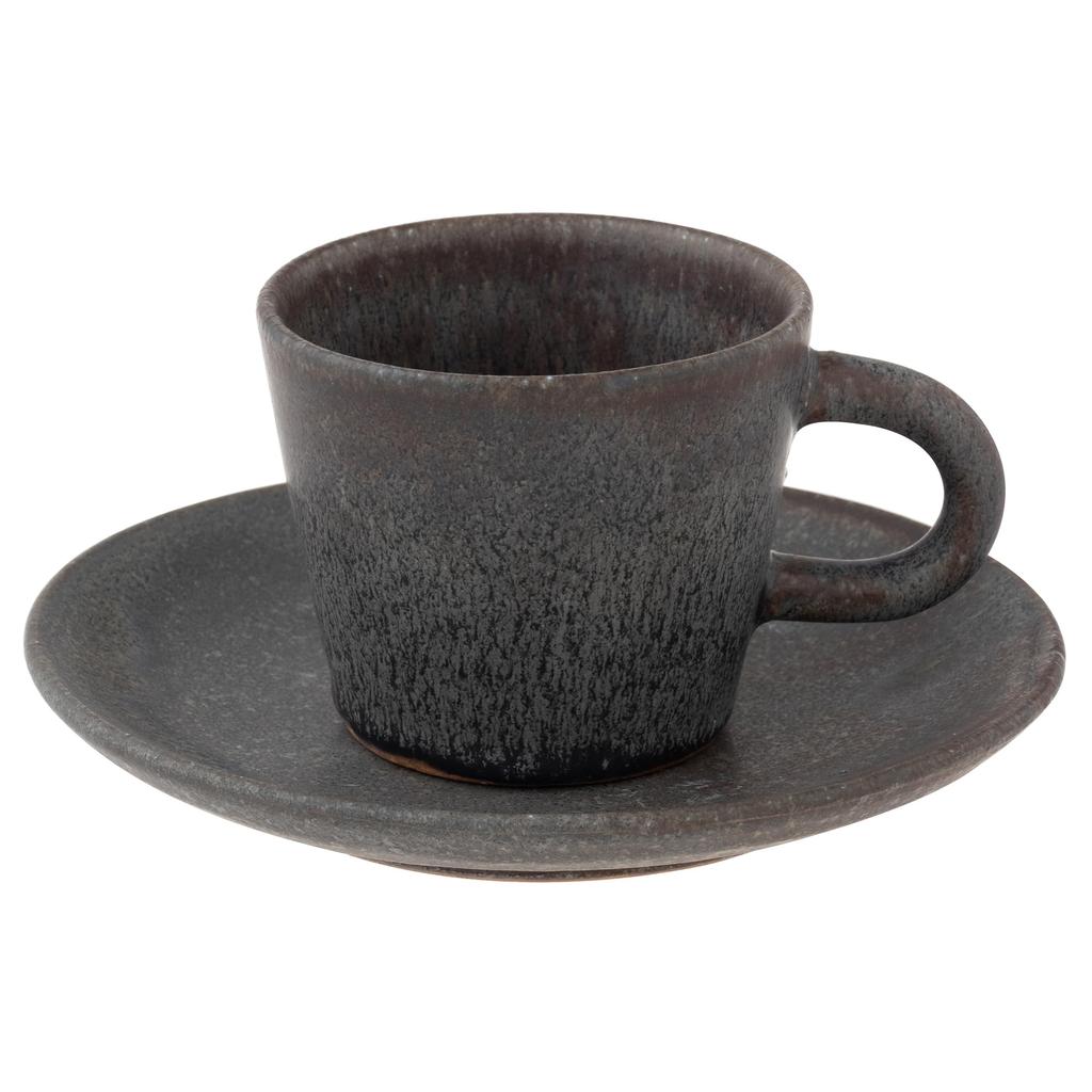 Marui Seito Shigaraki Ware Hechimon Cup & Saucer, 160ml Capacity, Black Kiln-Changed, Brown, MR-3-4388
