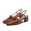 Spring /Summer New Genuine Leather Women Shoes Square Toe Buckle Strap Pumps Women Sandals Mary Jane Women Chunky Heels