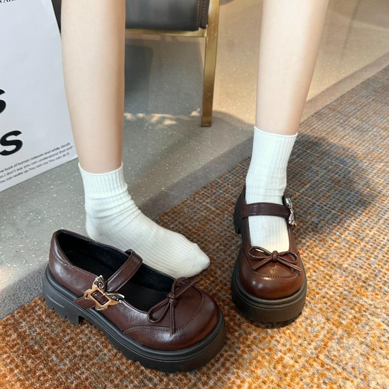 Fashion Shoes Female 2025 Mary Janes Women's High Heel Platform Dress Pumps Women Bow Tie Round Toe Med Heel Buckle Strap Shoes Women