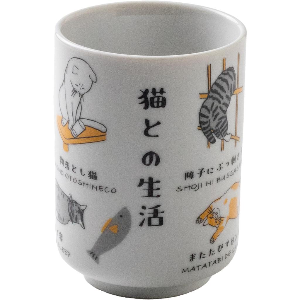Ippinsha Mino Ware Sushi Teacup, "Living with Cats," 280ml, MK22161