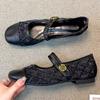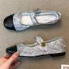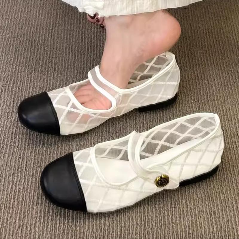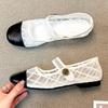 Fashion Elegant Metal Flowers Design Ballet Flats Women Comfort Breathable Mesh Mary Jane Shoes Fashion Round Toe Shallow Casual Shoes
