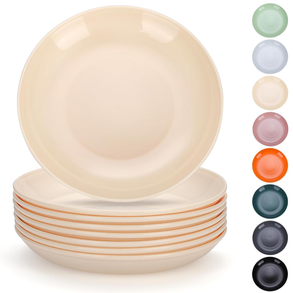 Evanda 8-Piece Plate Set, 24cm, Cheese White, Unbreakable Dishware, Made from Food-Grade Polypropylene, Heat and Cold Resistant, Microwave and