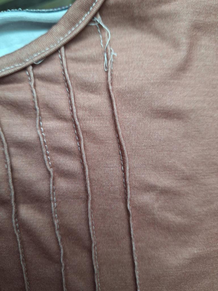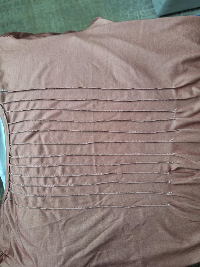 The dress is not bad, it fit the size, comfortable, light, loose, but not sewn well everywhere. In the most visible place in the pleating, threads stick out and there are tangled threads on the seams. The hem is sewn well, evenly, the overlock is good.