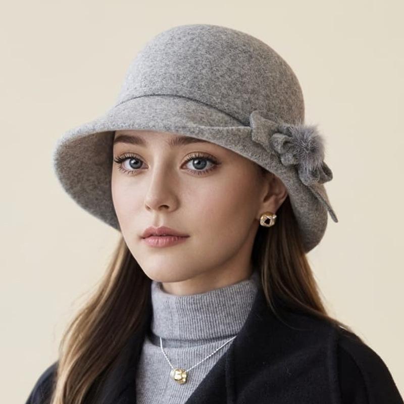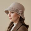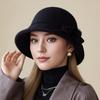 Hat Lady Autumn and Winter New Wool Top Hat Fashion Flower Warm Basin Hat Bucket Hat
