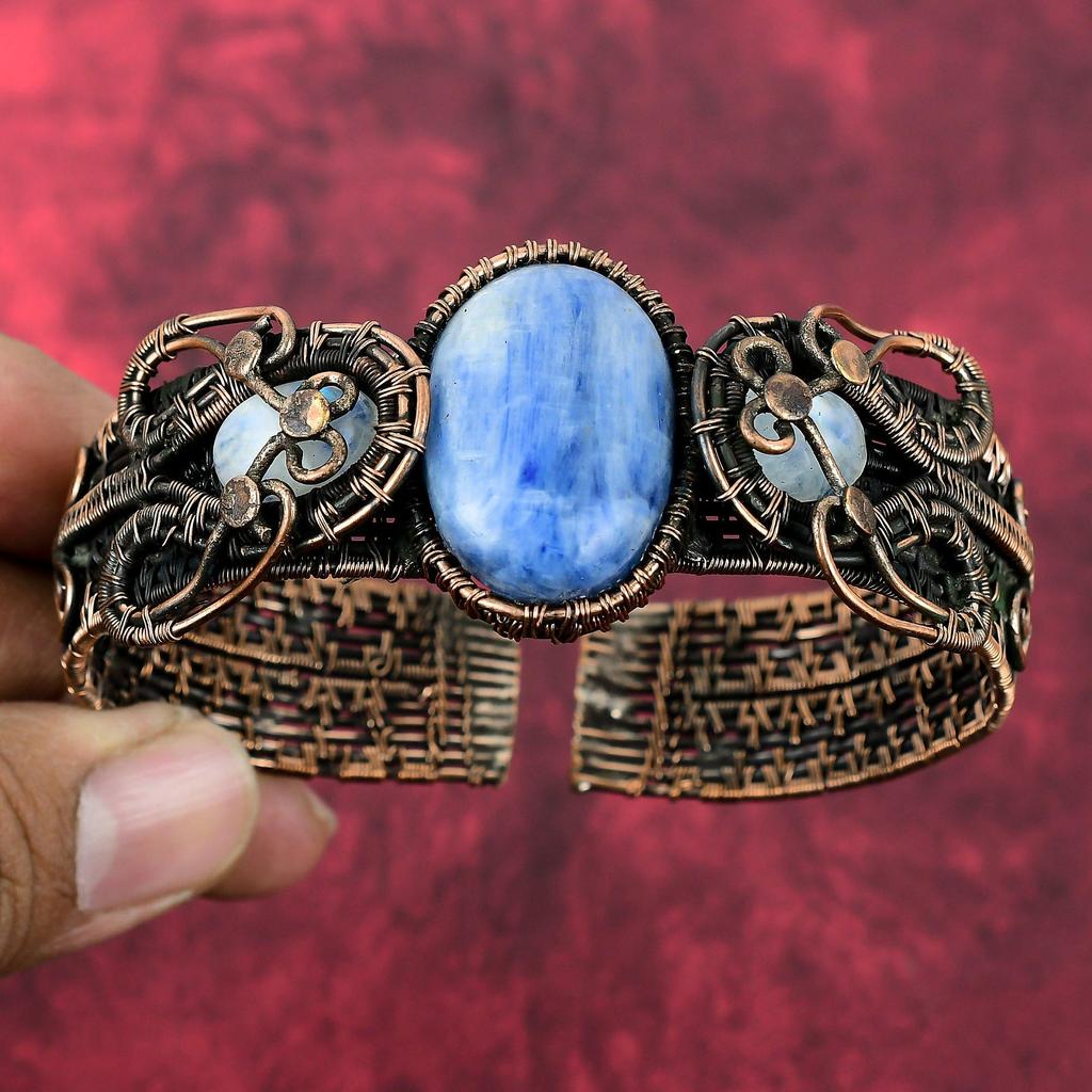 Kyanite Cuff Bracelet Copper Wire Wrapped Adjustable Bangle Rainbow Moonstone Gemstone Cuff Bracelet Handmade Copper Jewelry Gifts For Wife