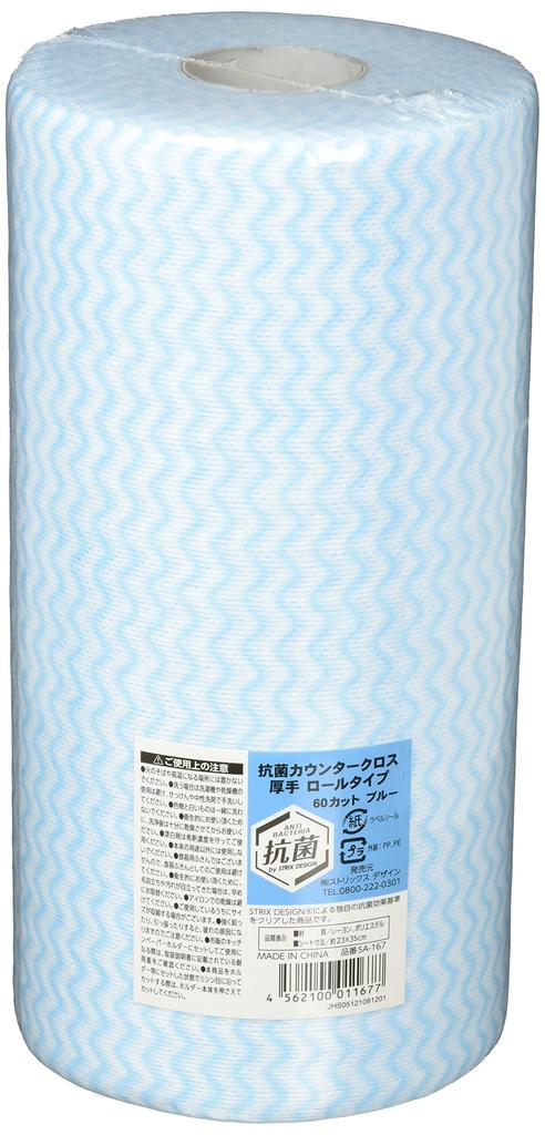 Strix Design Counter Cloth Roll, Heavy Duty, 60 Cuts, Blue, Approx. 23 X 35cm, Disposable Nonwoven Fabric, Dishcloth, Table Duster, Commercial Use,